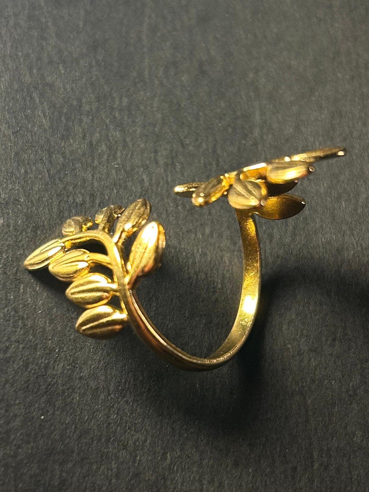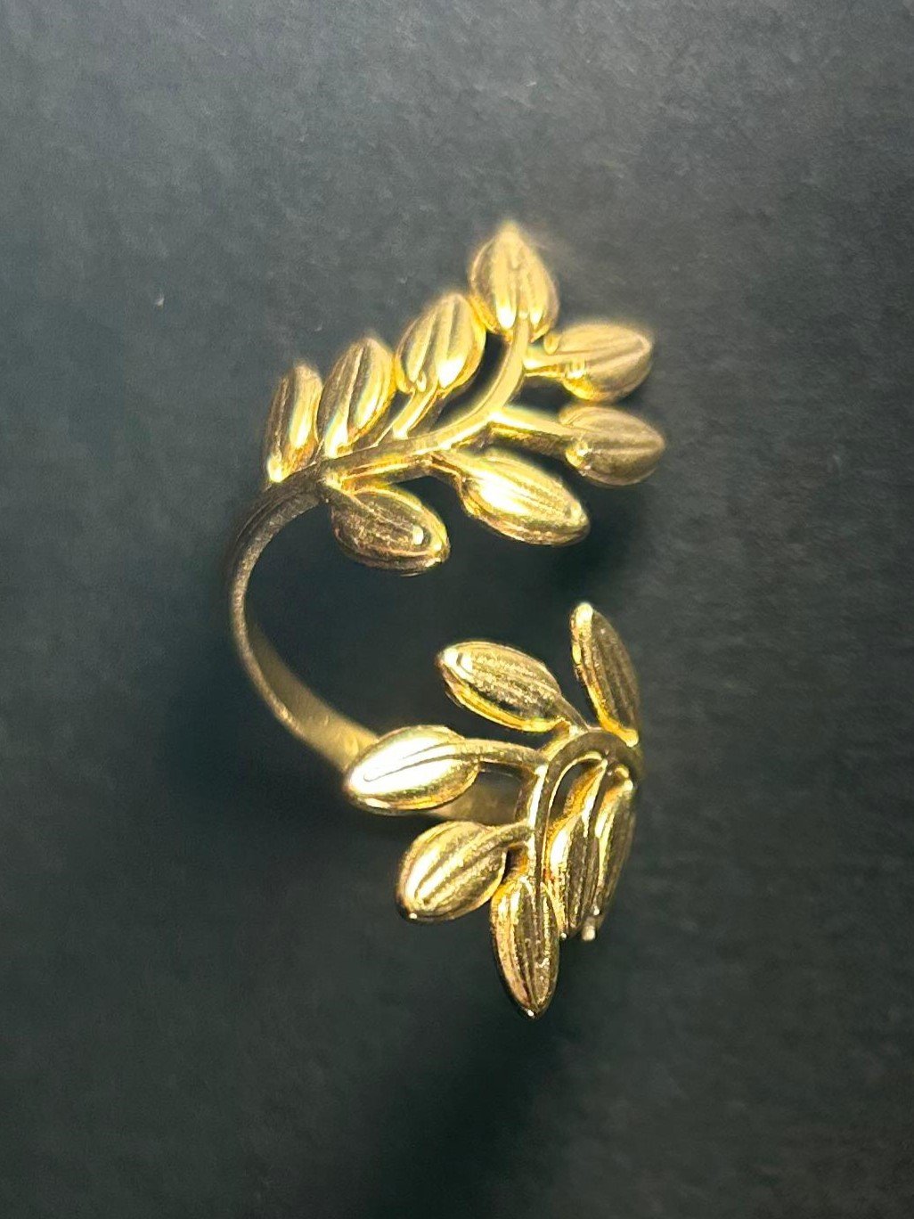 304 rostfritt stål 18K guldpläterade eleganta retropläterade geometriska blad- och hjärtformade öppna ringar