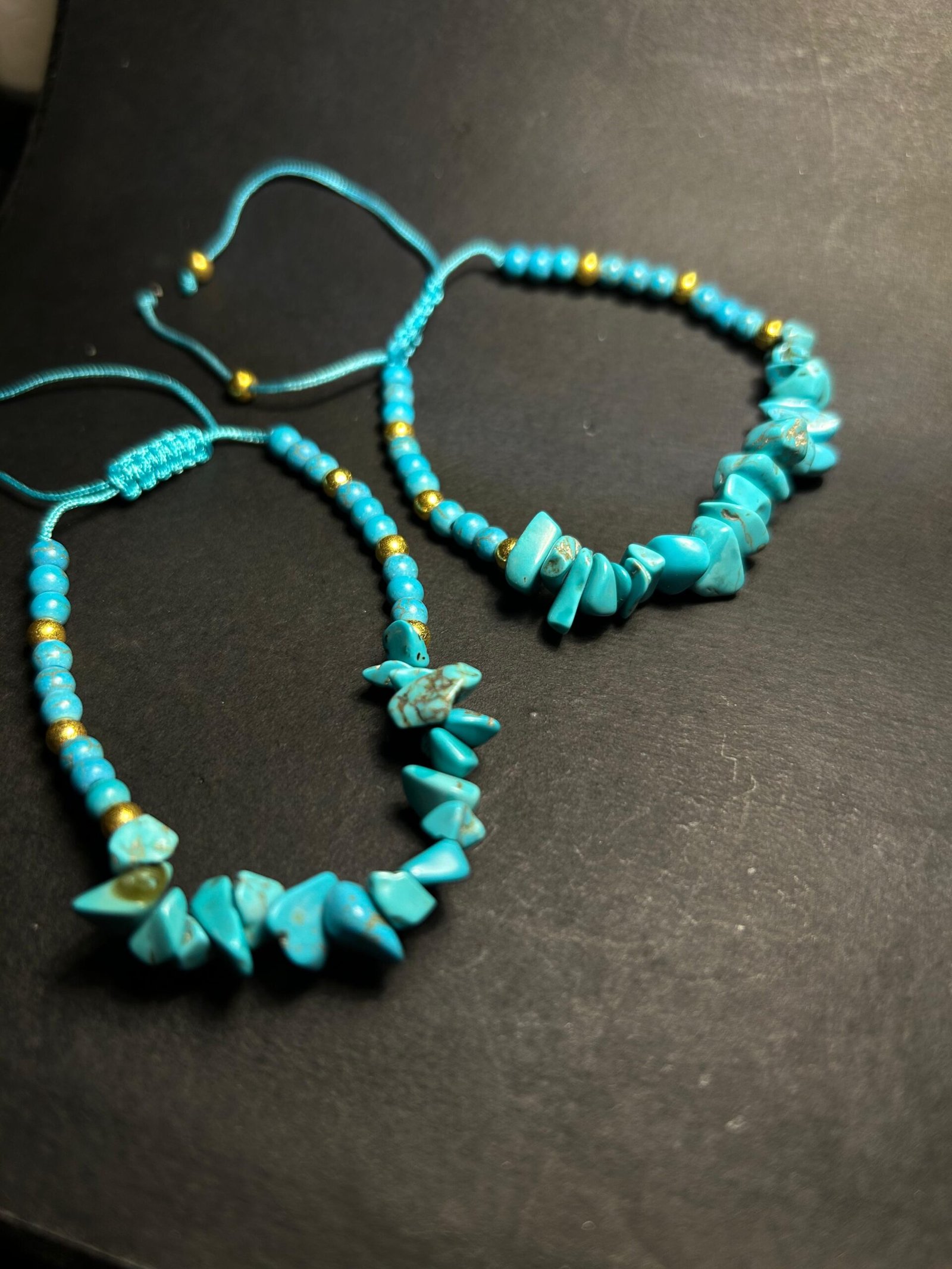 Etniska armband i geometrisk stil med naturliga stenar och flätad design.