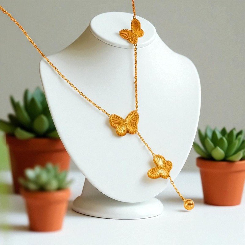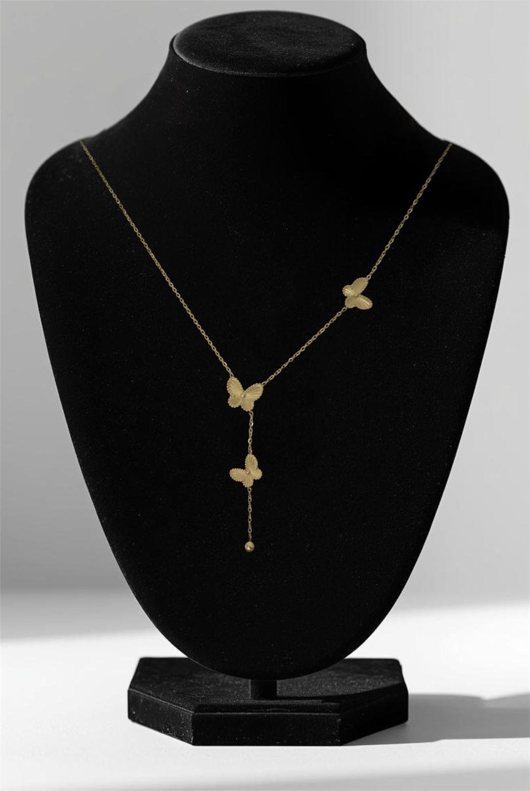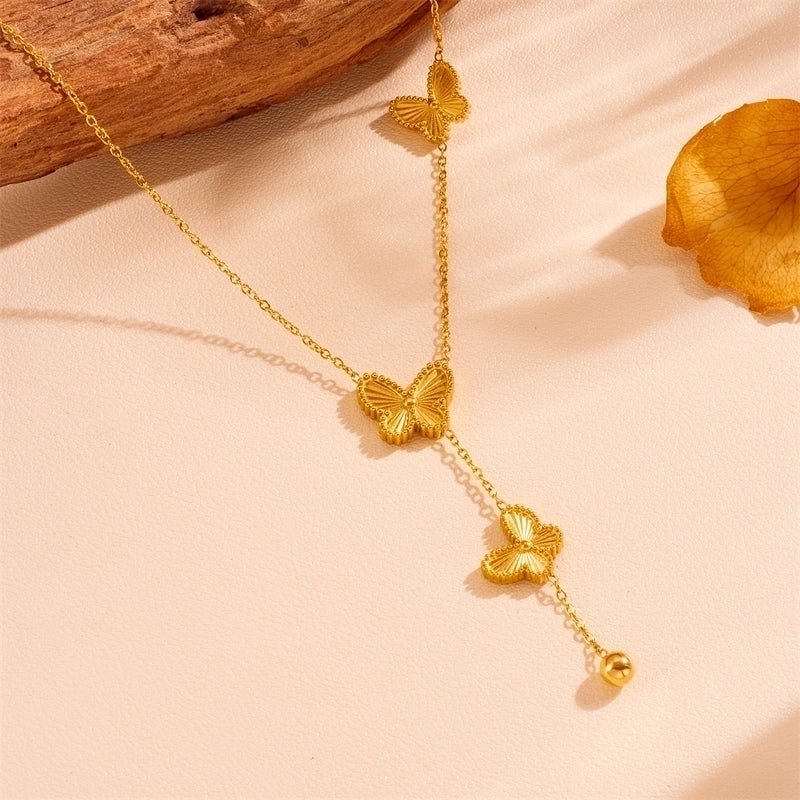 Minimalistisk halskedja i titan-stål med fjärilshänge pläterat i 18K guld