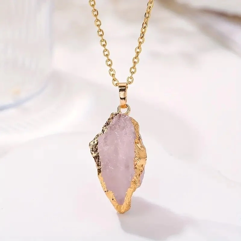 + Free Shipping25-35 mm oregelbundet formade naturliga stenkristallhalsband, hänge med guldfärgad inramning, berlocker för smyckestillverkning, DIY örhängestillbehör.