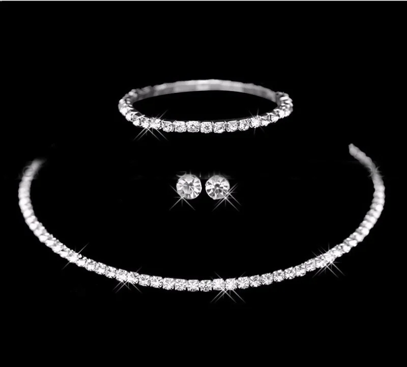 Minimalistiskt smyckeset i enfärg med infattade zirkoner och strasstenar.